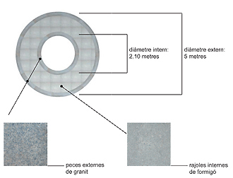 Mides: - Diàmetre extern: 5 metres - Diàmetre intern: 2,10 metres
