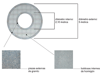 Medidas: - Diámetro externo: 5 metros - Diámetro interno: 2,10 metros