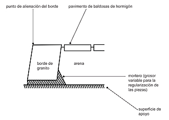 Sección del bordillo de la acera para explicar su construcción, preparada para que el visitante a la exposición pueda pasear por encima.